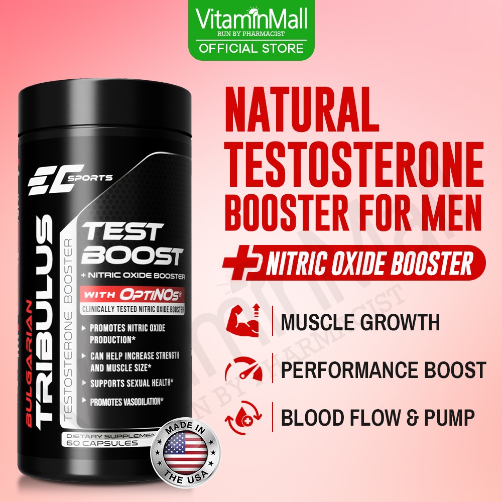 Nitric oxide boosters enable nitric oxide production to give you consistent strength to power through your workout, shorten your muscle recovery time boost muscle mass through directing protein for muscle building. Together with the testosterone boosting effect, EC Sports Bulgarian Tribulus with Maca + Nitric Oxide Booster helps you to gain lean muscles faster, increase muscle strength, and shorten muscle recovery time