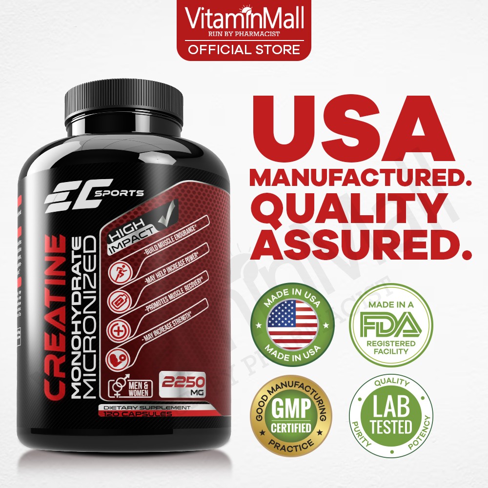 Made in USA, each and every batch of EC Sports Creatine Monohydrate 2250 are proudly manufactured in a GMP-certified, FDA-registered manufacturing facility in the United States.