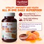 Other potential health benefits of royal jelly include promoting cardiovascular health, support healthy metabolism, maintains healthy gut microflora, restores energy & vitality levels.