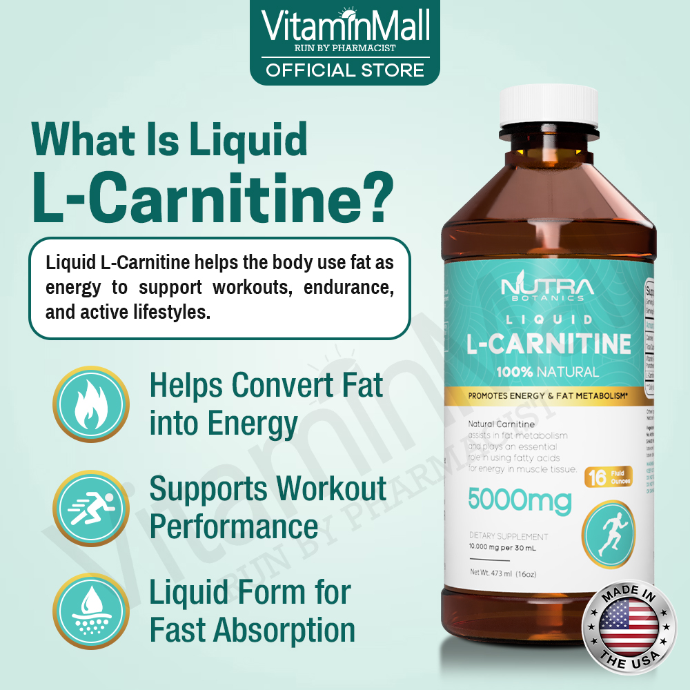 Nutra Botanics Liquid L-Carnitine 5000mg is contains natural carnitine that is the best fat burner which helps you lose weight fast and build muscle mass, making it ideal for bodybuilders. L-carnitine benefits includes enhancing energy levels, boosting endurance levels, promoting healthy blood circulation and aids in post exercise recovery. It can also help reduce muscle tiredness and enhance muscle recovery time. Carnitine plays a critical role in energy production. It also has other benefits such as promoting blood circulation which in turn, promotes heart and cardiovascular health.