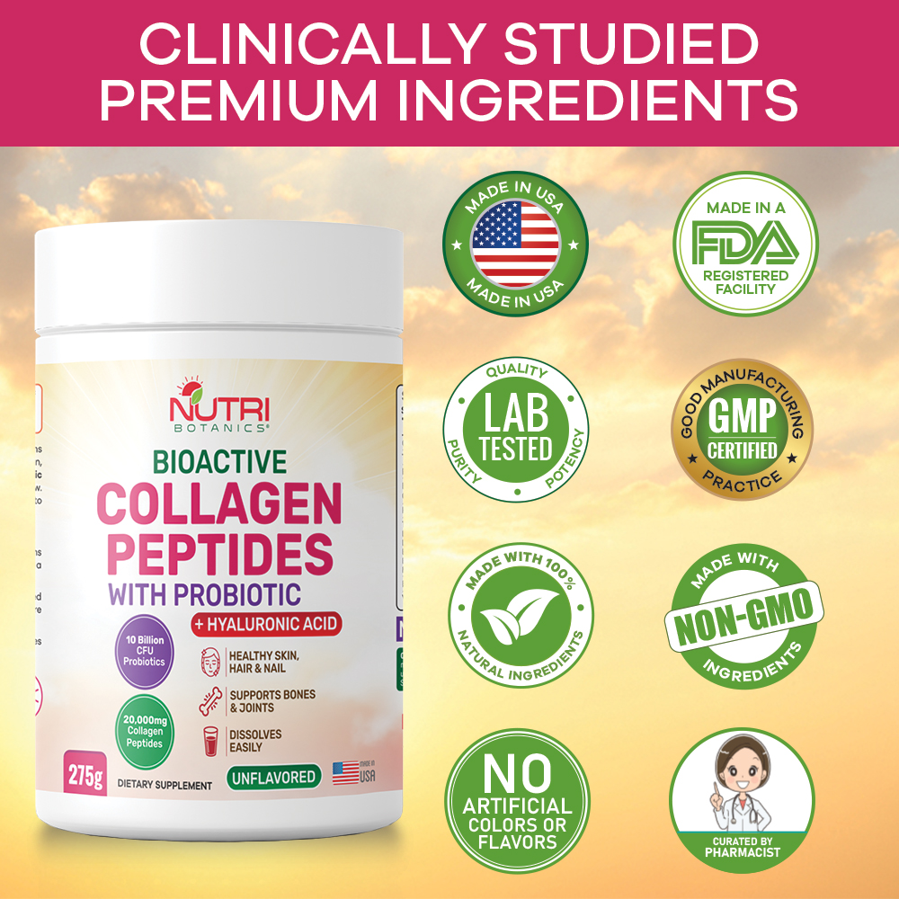 Why choose Nutri Botanics Bioactive Collagen Peptides Powder with Probiotics and Hyaluronic Acid?